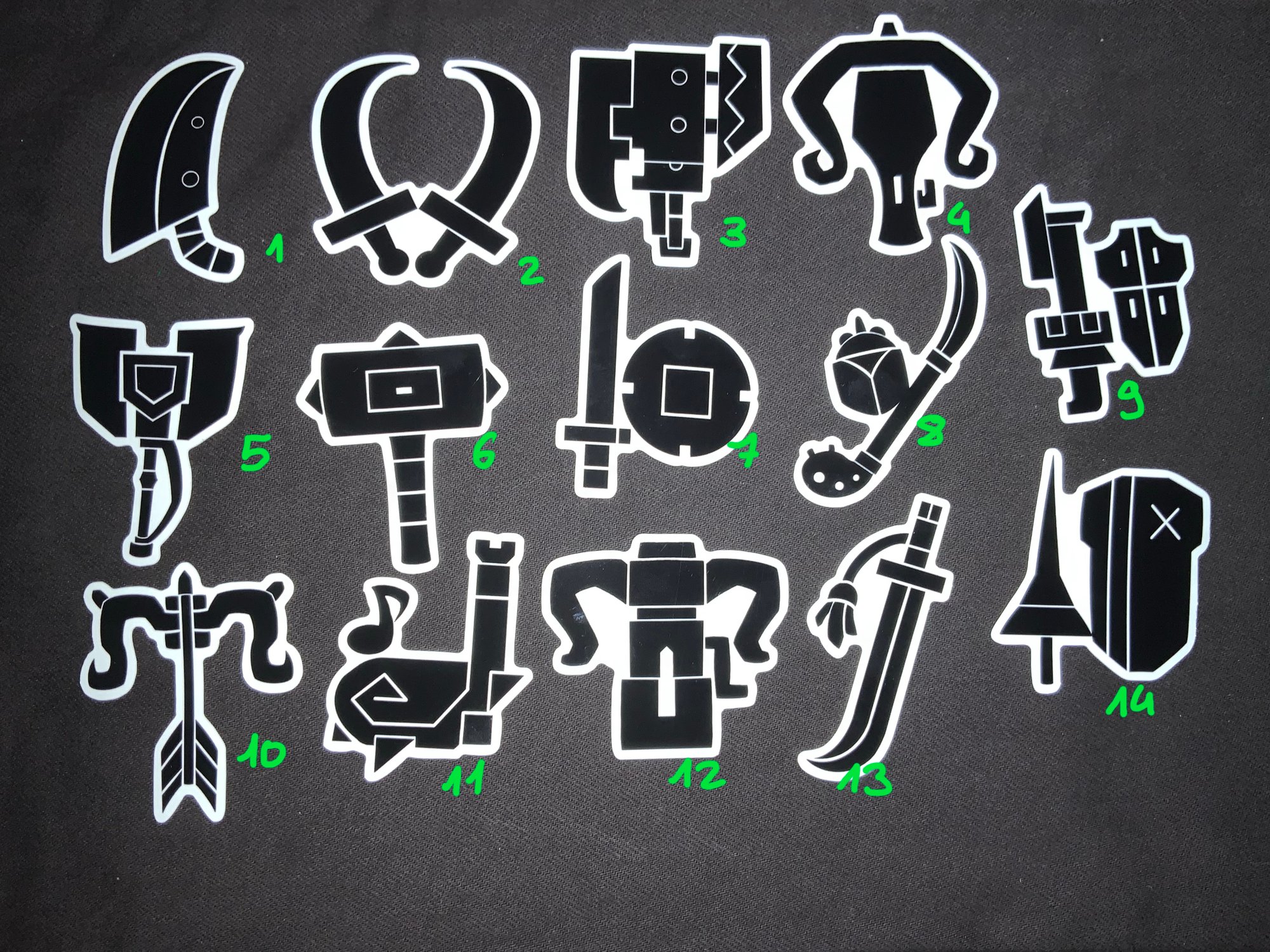 Want to show off your main weapon? Pick up those lovely stickers to stick on whatever you'd like! They are 55 mm by 55 mm, printed black on white with ashiny coat to finish the design.